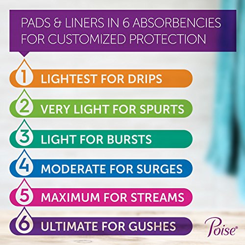 Product Description Poise Thin-Shape Incontinence Pads, Light Absorbency, Regular, 30 Count (Pack of 4) this product consists of the following in it the poise maximum absorbency incontinenece pads. 0
