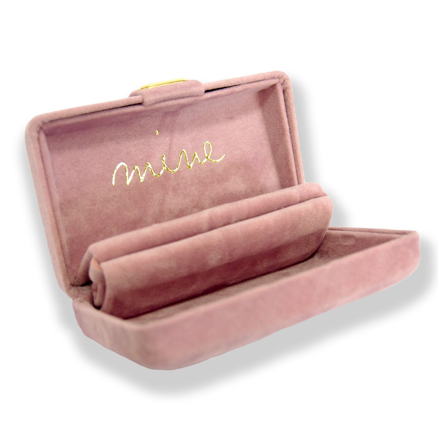 素材 ワイン・ブラック・サクラ:合成セーム ローズ(内装ブラウン)・アイボリー(内装ブラウン):サテン ケースサイズ:幅8.7cm×奥行5.8cm×高さ3.5cm 付属品:白化粧箱