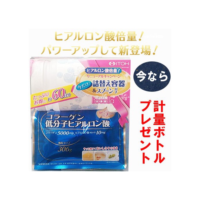 원본상품명: 【容器付き限定品】井藤漢方製 コラゲン低分子ヒアルロン酸 約60日分 306g+詰替え容器 (4987645499078)