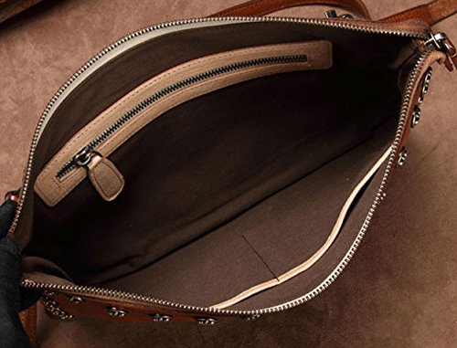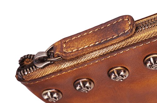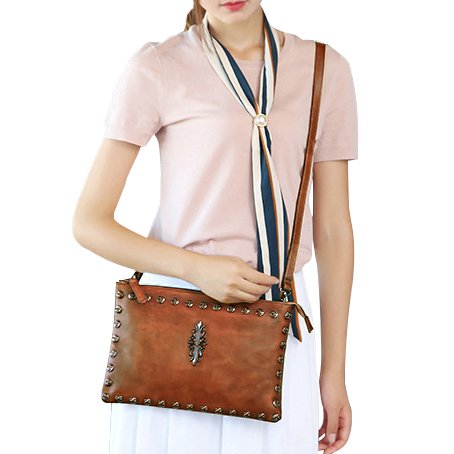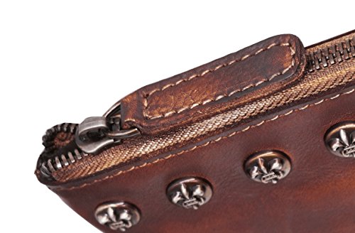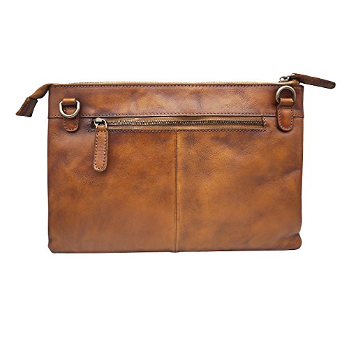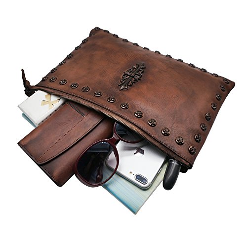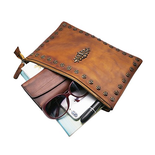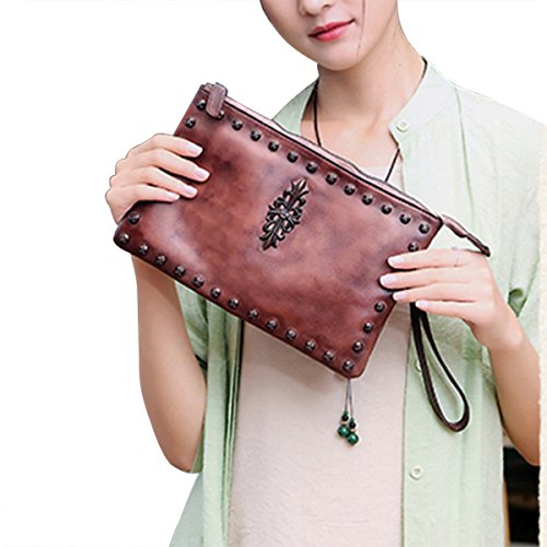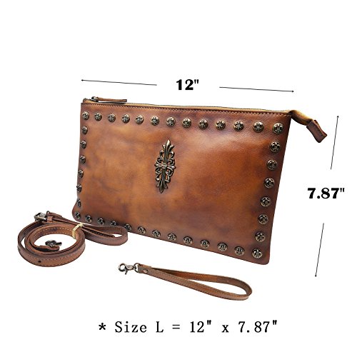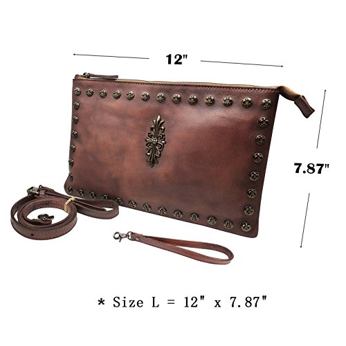 -. Feature : Top zipper closure. You can use it as a simple carry on clutch or over your shoulder with the shoulder strap. Perfect for daily use or go shopping or travel / Two Dimensions: Size S=10.43"L x 7.09"W, Size L=12"L x 7.87"W Multifunctional: 2 x small sack, 2 x Zipper Pocket (inside and back). Wristlet strap and shoulder strap are included. Unique designed for you to keep your wallet, keys, note book, make-up well organized. Scratch resistant and durable with classic and vintage design / This handmade cross-body purse / clutch handbag was produced through degreasing and tanning technology, and has the most luxury and comfortable feel that you can get from this real leather messenger bag. Absolutely a gorgeous combination of beauty and utility. / It is dip dyed depending on the master's craftsmanship and experience. So there's no two exactly the same product. It also expresses the silversmith's unique feeling and thoughts. A must have item for you to appear your special nobility in any occasion! / Gift Occasion: Daily gift for your friends or family, birthday, Christmas, anniversary, Mother's Day, Valentine's Day, New Year's Day and any other important date when a gift is needed. It's also a sturdy gift for self use. Be ready to receive many compliments!