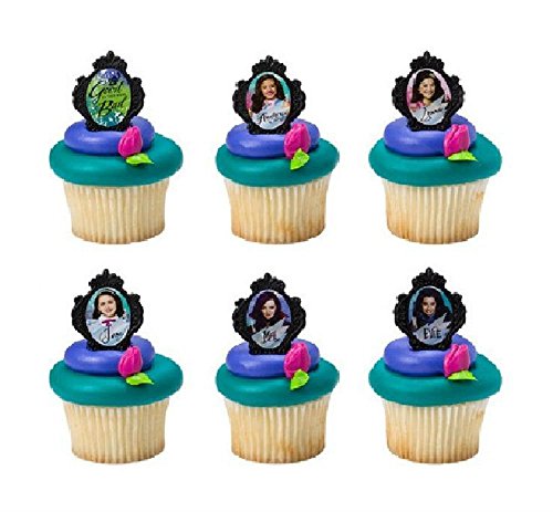 -. Feature : This is for (24) Disney Descendants Cupcake Topper Rings. / You will receive 4 of each of the 6 characters pictured: 4 Good is the new Bad, 4 Eve, 4 Jane, 4 Mal, 4 Audrey, and 4 Lonnie For a total of 24 rings. / I am sorry but I cannot accept special requests for certain P.R.Incess rings, I can only send the amount as described. / You can place on top of a cake or cupcake, or use them as party bag favor fillers. They are actual plastic rings the kids can wear. / Please note the decorated cupcakes in the picture are only shown to give you an idea of how you can decorate your own cupcakes. You will receive no edible cupcakes, you will receive only the plastic cupcake decoration ring toppers as shown and described.