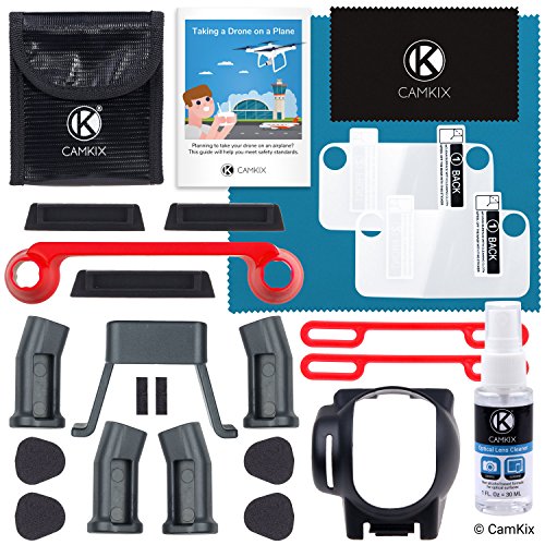 Studio : CamKix Publisher : CamKix Binding : Office Product Product Description CamKix Starter Kit for DJI Mavic Pro The joystick cover locks the position of both control sticks during transport of your DJI Mavic Pro drone, preventing waggling, bending or even breakage. The thumb stick bracket also guards the screen of the DJI Mavic Pro remote control. The propeller locks can be applied to a pair of propellers (left and right), after you fold in the arms of your DJI Mavic Pro drone. Each propeller lock will keep a pair of propellers in a fixed parallel position. The shape of the sun shield is designed to block excess sunlight from your DJI Mavic Pro camera, without reducing any freedom of movement by the gimbal. You will achieve the best results with steady and slow flight. We do not recommend flying fast or using the sport mode. Adding extra height to your DJI Mavic Pro will reduce the impact of dust, dirt, sand and moisture on the camera, gimbal, cooling mechanism and heat sink of your drone. The explosion proof and fire resistant bag allows you to safely transport 2 DJI Mavic Pro batteries in your carry-on hand luggage. Adding the silicone covers to the battery ports offers full protection against dust and scratches and eliminates the risk of short-circuiting. Cleaning cloths and cleaning spray included to keep your DJI Mavic Pro drone and controller in perfect condition. Contents: - 1x Joysticks Lock - 2x Propeller Lock - 1x Landing Gear Set - 1x Sun Hood - 1x LiPo Safety Bag - 2x Battery Port Cover - 1x Charging Port Cover - 2x Screen Protector - 2x Cleaning Cloth - 1x Cleaning Spray CamKix If for any reason you are unhappy with any product by CamKix, please do not hesitate to contact us. CamKix-USPTO# 86127507- is a registered trademark protected by US Trademark Law. CamKix products are sold by authorized sellers only. 0
