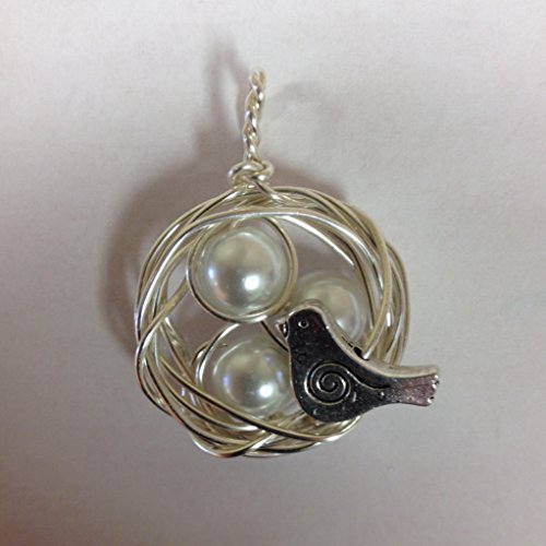 -. Title : Hand Wire Wrapped Bird's Nest Pendant with 3 Pearl Eggs