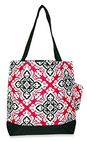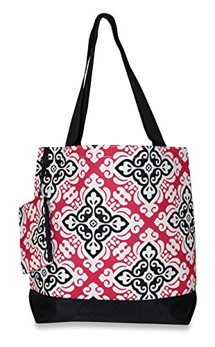 Product Description The possibilities are endless with this fabulous large tote bag. Throw it over your shoulder to take shopping or to the gym. Use it as carry on luggage for the chic jet setter or a diaper bag for the fashionable mom on the go. Designed in a fun handbag style print makes an ideal shopper tote, knitting bag or gifts for your bridesmaids! Makes a great school bag and can handle text books and binders because it's made out of durable canvas and has sturdy straps. This light weight weekender bag is lined with nylon for easy cleaning. A spacious interior pocket keeps everything you need right at your fingertips. Features a velcro top closure, and comes with a matching attached coin purse! 0