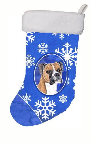 Caroline's Treasures SC9390-CS Boxer Winter Snowflakes Christmas Stocking, 11 x 18", Multicolor