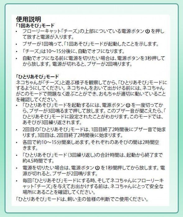 | チーズのかたまりのどちらか一方から、2匹のねずみが「いないいないばぁ」と顔を出したり隠れたりします。「1回あそび」モード、「ひとりあそび」モードの2種類のモードから選んで遊ばせることができます。 |