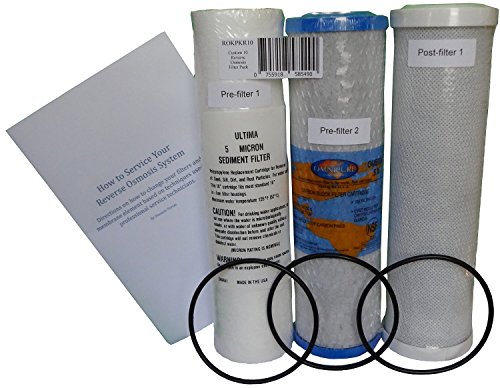 Studio : Desert Water Condtitioning Publisher : Desert Water Condtitioning Binding : Kitchen Product Description After market replacement filters will work for Krystal Pure(TM) KR10 reverse osmosis systems Envirotech ET4000 RO and other systems that require a 1 micron sediment filter a .5 micron CTO/VOC carbon pre-filter and a carbon block post filter and O-rings. Includes the new service manual "How to Service Your Reverse Osmosis System" by Dionicio Porras. Service your reverse osmosis system like a pro! 0