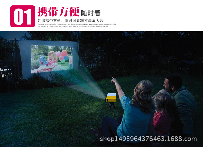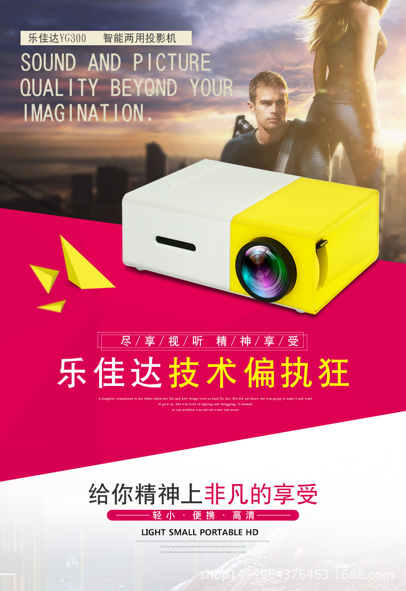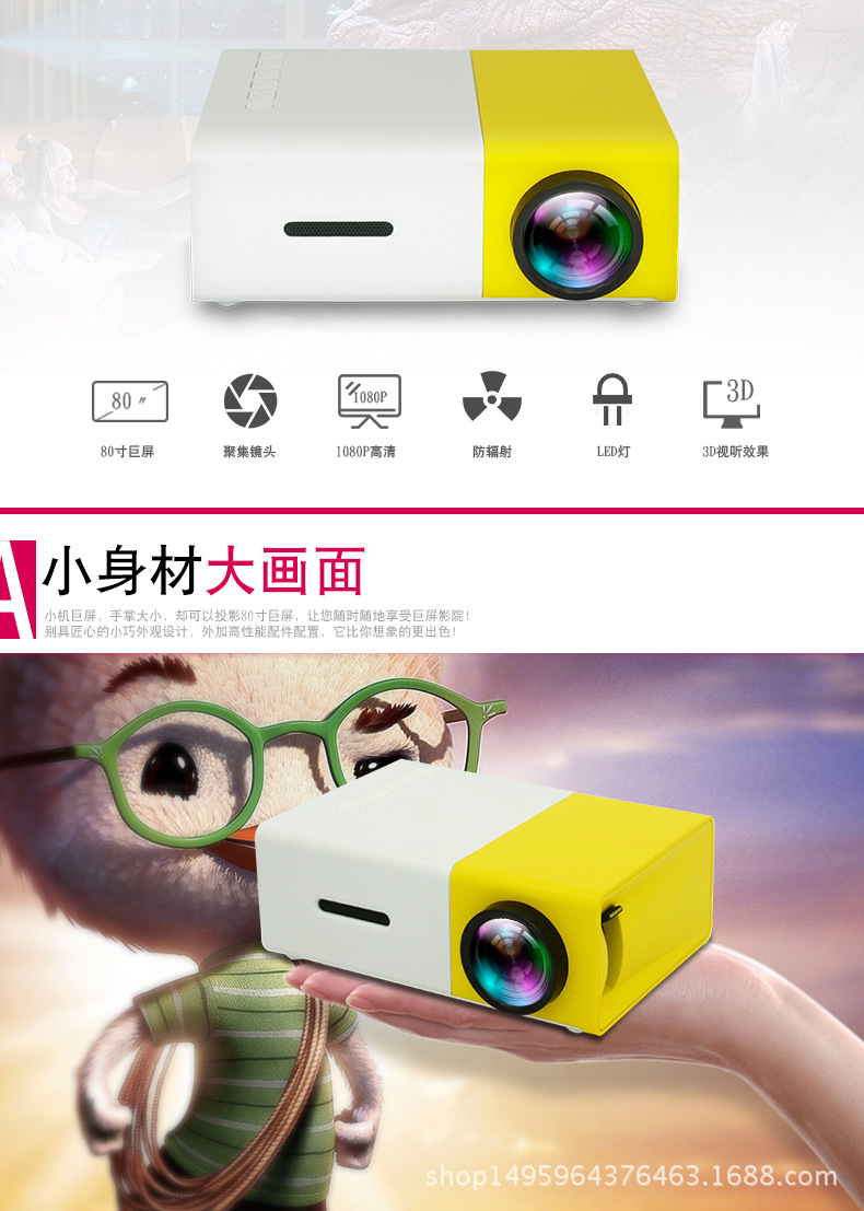YG300手持家用投影仪高清3D迷你微型家庭投影LED投影机支持1080p