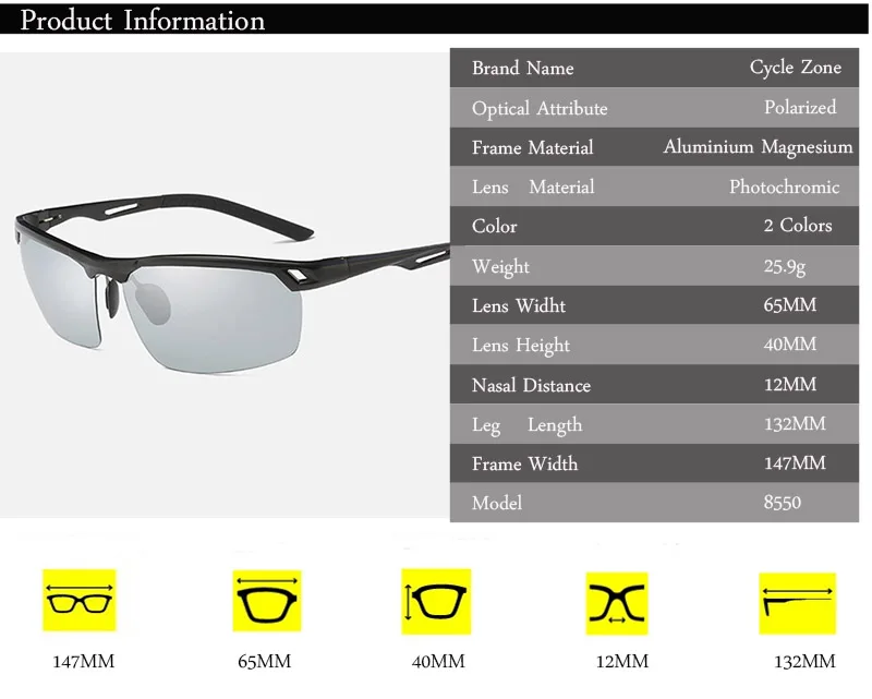 Lenses Optical Attribute:Photochromic Polarized UV400 Cycling Eyewear