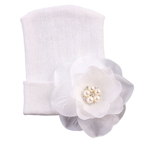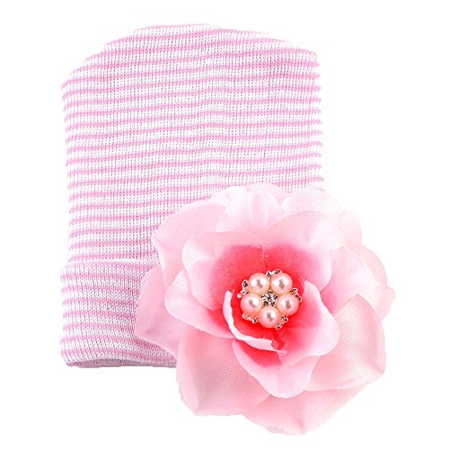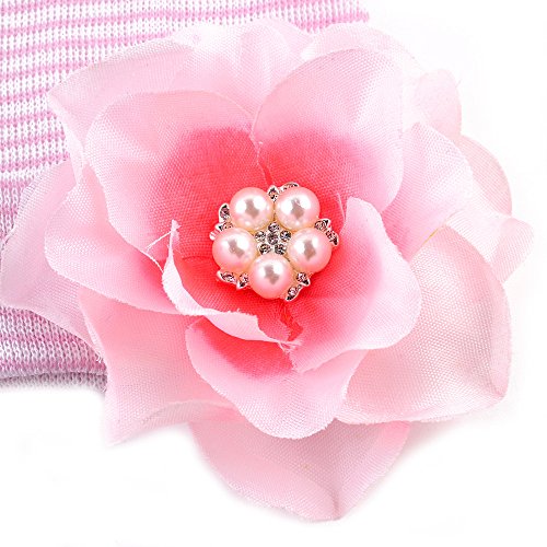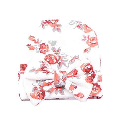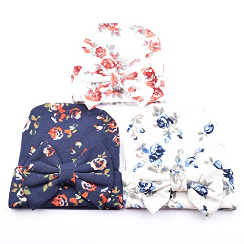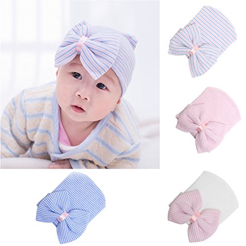 Ever Fairy 3 Pcs Newborn Hospital Hat Infant Baby Hat Cap with Big Bow Soft Cute Knot Nursery Beanie
