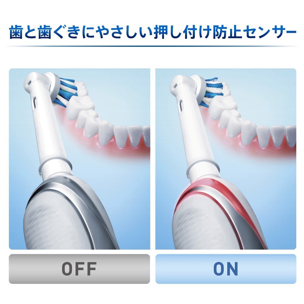 Newly developed Naname bristle multi-action brush The high plaque removal capability is obtained, brushing can be done without damaging the gums with a pressing prevention sensor (When the excessive pressure is applied to the teeth and gums, the vertical vibration stops automatically