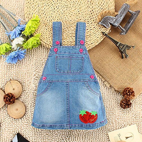 -. Binding : Apparel -. Brand : Kidscool -. Department : baby-girls -. Feature : Note:Recommended to buy from Kiscool,Better quality guarranteed and free gift / Sent immediately by e-Packet,will take 5 to 10 business days to get to the US,and 9-18 business days to worldwide / Because your baby grow fast,choose a bigger size will be better / Embroidery two strawberries decoration / Cotton denim soft to wear skirt -. ProductGroup : Apparel -. ProductTypeName : PANTS -. Title : Kidscool Baby Girls Summer Cotton Denim Strawberry Adjustable Straped Overalls