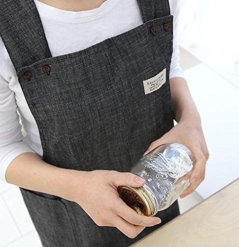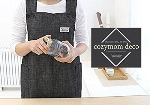 Cozymom Chef Apron Gift Japanese Style X Shape Denim Smock Natural Cotton Apron-black Color