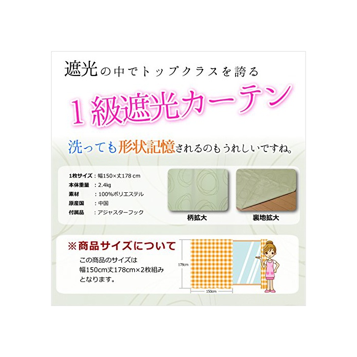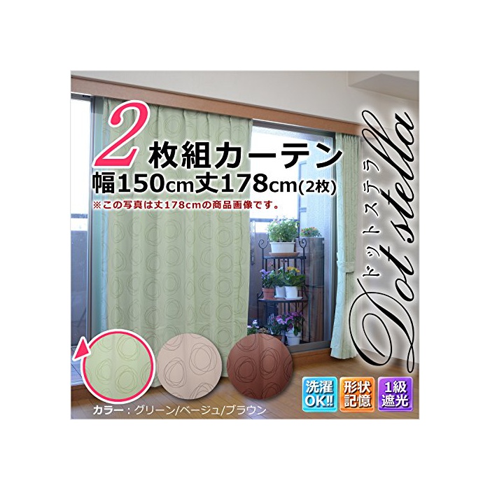 원본상품명: HarukaStyle(ハルカスタイル) 1級遮光カ?テン2枚組 ドットステラ 幅150×丈178cm グリ?ン