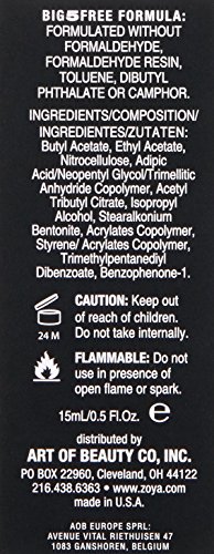Big 10 Free Long Wear Formula Vegan Friendly Professional Salon Formula Brand : ZOYA EAN : 0765011015541 Product Dimensions(LxWxH) : 4x4x8cm ; 68 g Package Dimensions(LxWxH) : 8x4x4cm ; 68 g