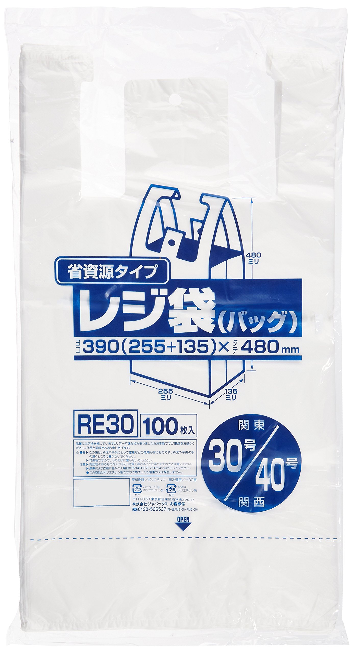 Plastic shopping bag No. 30 white 100 pieces RE30