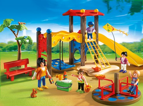 -. Feature : The Playmobil Playground has some outdoor fun for everyone / Kids will love racing figures down the slide or giving them a push on the swing / Figures can bend, sit, stand and turn their heads / Encourages children to explore and learn while having fun / Set also includes one adult and four children figures, kite, park bench, sand toys, cooler and additional accessories