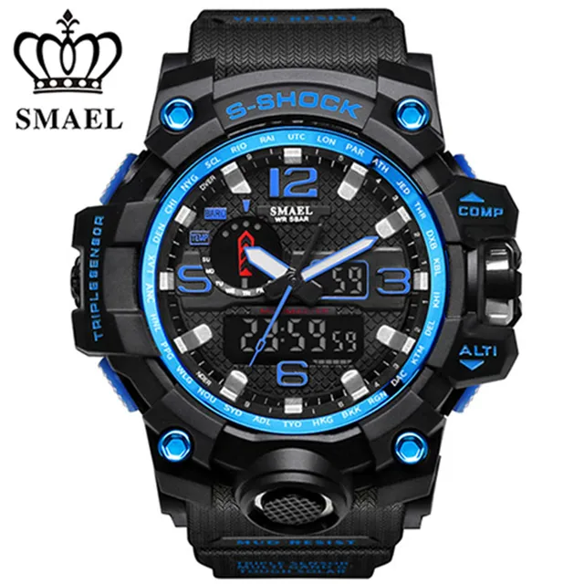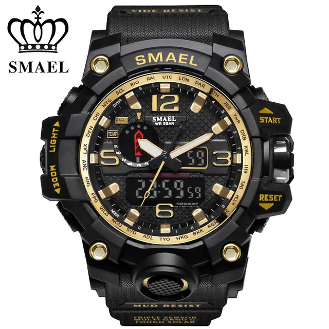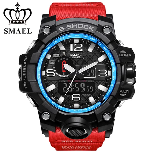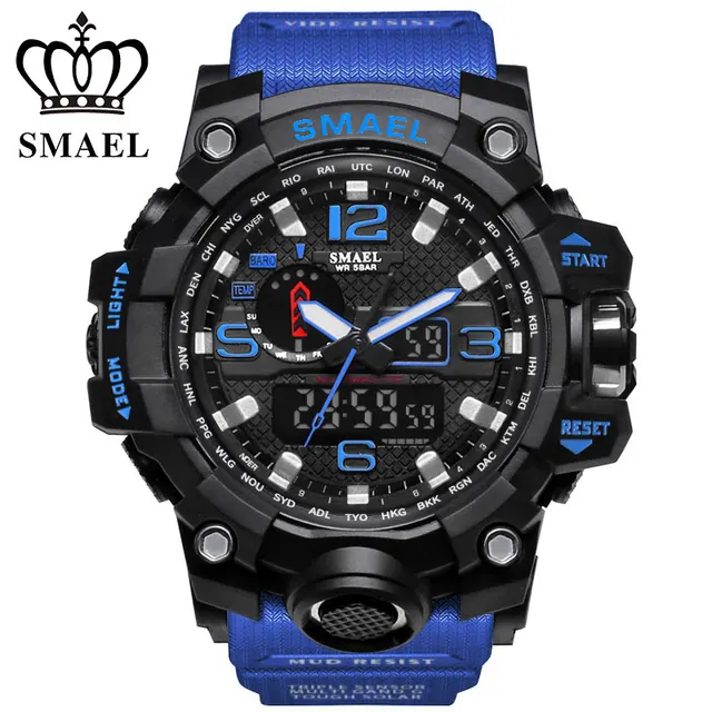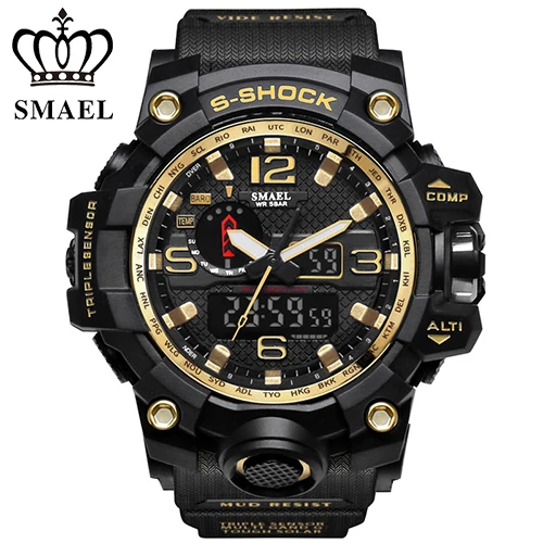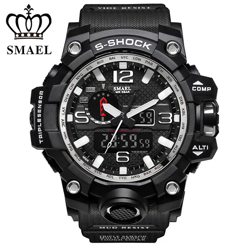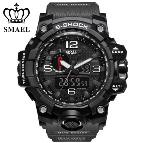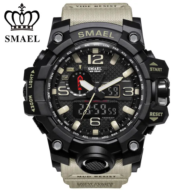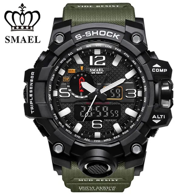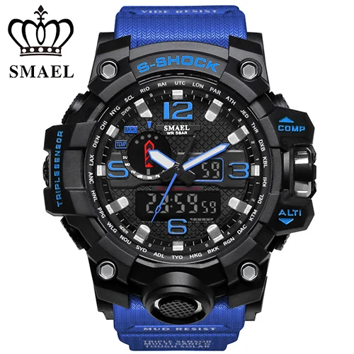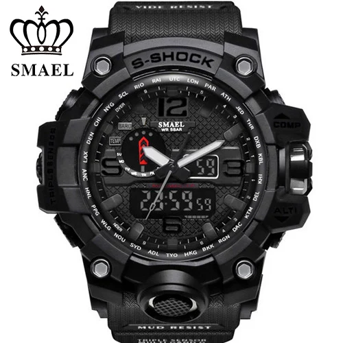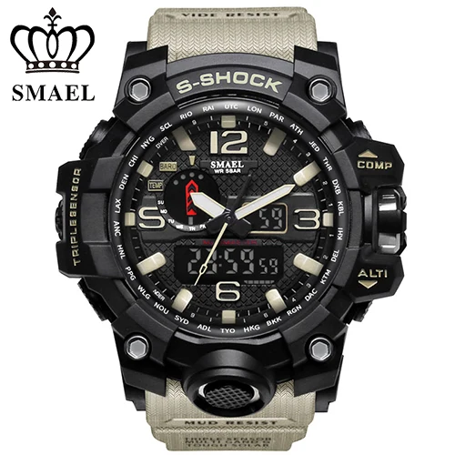 | [해외] SMAEL 망 석영 시계 Relogio Masculino 듀얼 타임 손목 시계 빛나는 아날로그 디지털 패션 야외 스포츠 시계 1545 |