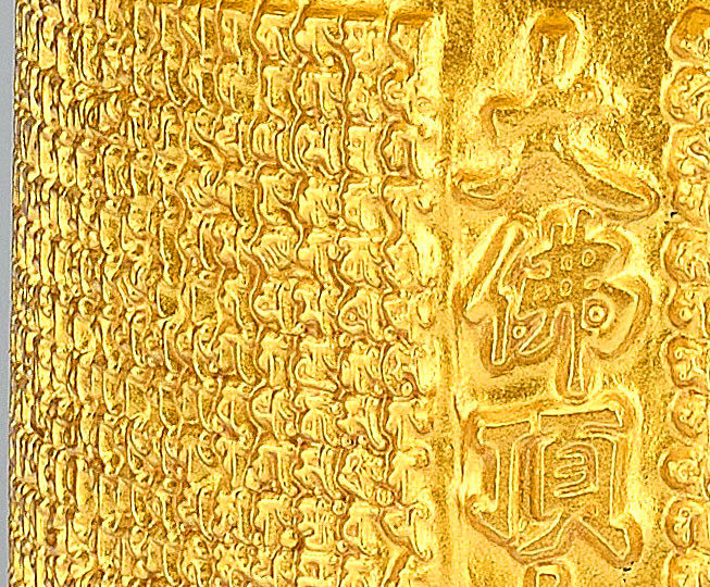 楞严法要的核心之处,就在于殊胜的楞严神咒.为了让经幢充分发挥出不可思议的神奇力量, 福慧弘法小组运用领先全球的铸造工艺,把楞严神咒直接凸铸在经幢上,使每个梵文都化为形象生动的立体铜字,令经幢上面的楞严神咒化为跃跃欲动的立体咒轮, 迸发出楞严法要所蕴含着的无穷微妙法藏.使经幢更加庄严,感应力更加强大.