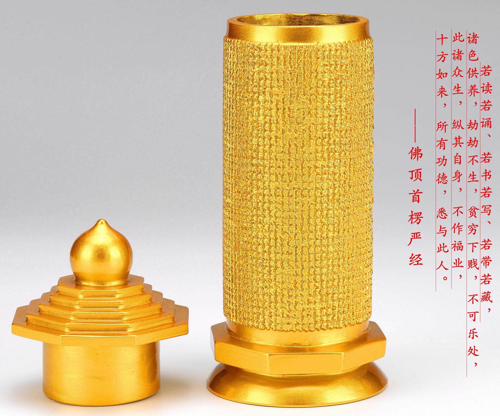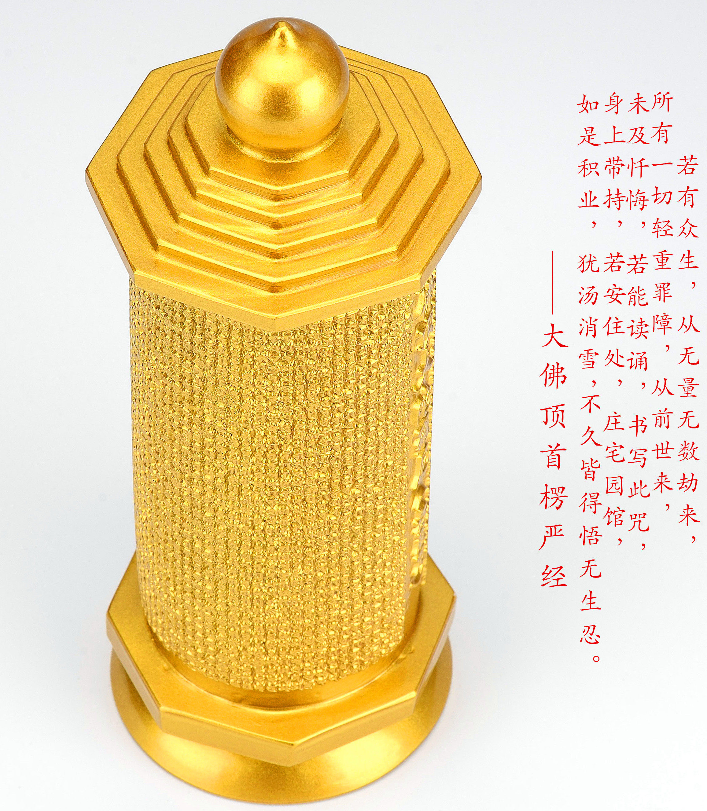 由于铸造工艺难度甚高,在目前全球流通的所有楞严经幢中,独有此款大经幢,才具备了黄铜凸铸整篇楞严神咒的.福慧弘法小组的师兄们在诸佛菩萨的慈悲加持下,以锲而不舍的精神,克服了重重困难,此如法殊胜的经幢才成功面世! 愿大众礼拜供养此经幢,都获福无量,佛道早成!