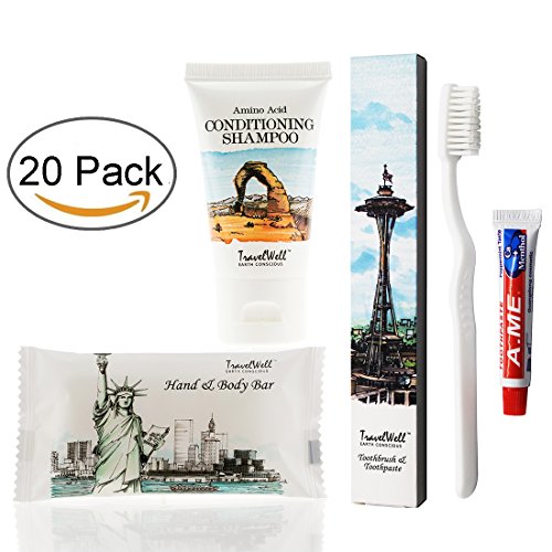 TRAVELWELL Landscape Series Hotel Toiletries Amenities Travel Size Massage Cleaning Soaps 1.0oz/28g,Shampoo & Conditioner 2 in 1,Tooth...