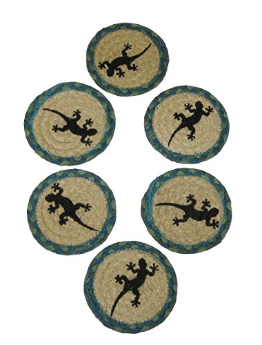 - Lizard Gecko Silhouette Braided Jute Coasters 6 Piece Set