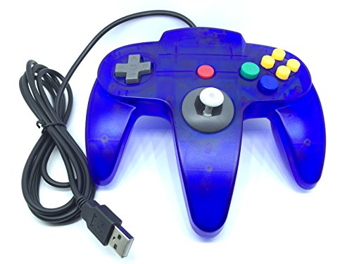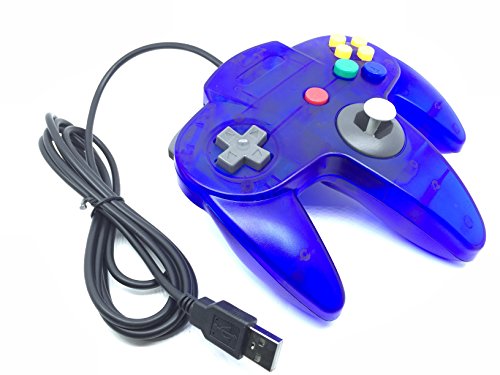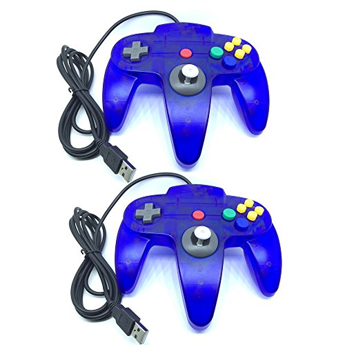 Bowink 2 packs Classic Retro N64 Bit USB Wired Controller for PC -Clear Blue and Clear Blue