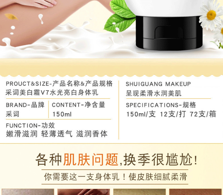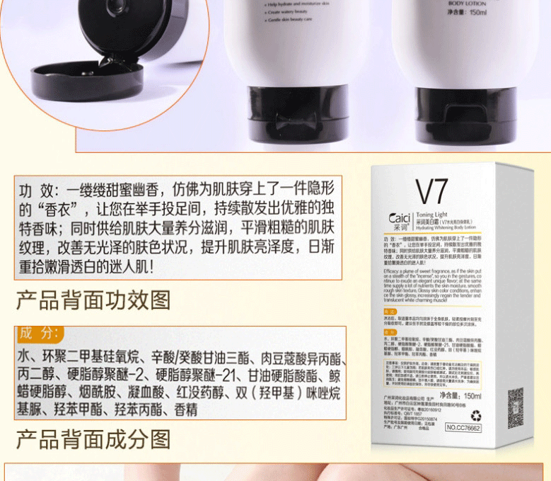 Valentine's Day gift V7 whitening body cream body whitening film 150g moisturizing skin care cosmetics explosion