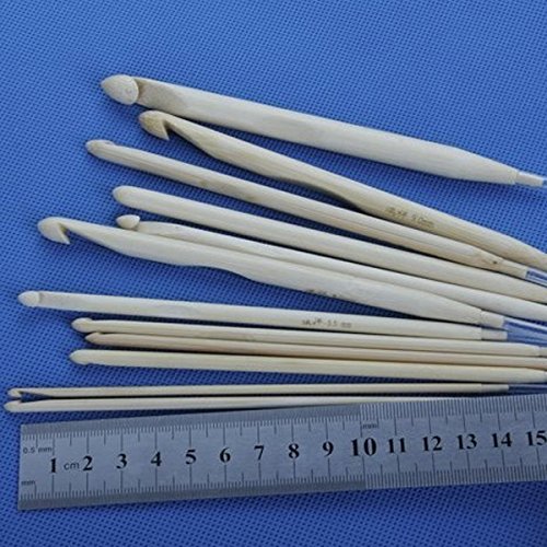 Tinksky 12pcs Afghan Tunisian Bleached Bamboo Carpet Crochet Hooks Needles