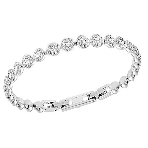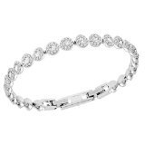 Pure, timeless sophistication. This rhodium-plated bracelet features a row of round clear crystals, each one framed in sparkling clear crystal pave. It combines perfectly with other pieces from the Angelic family. Measures 6 5/8"