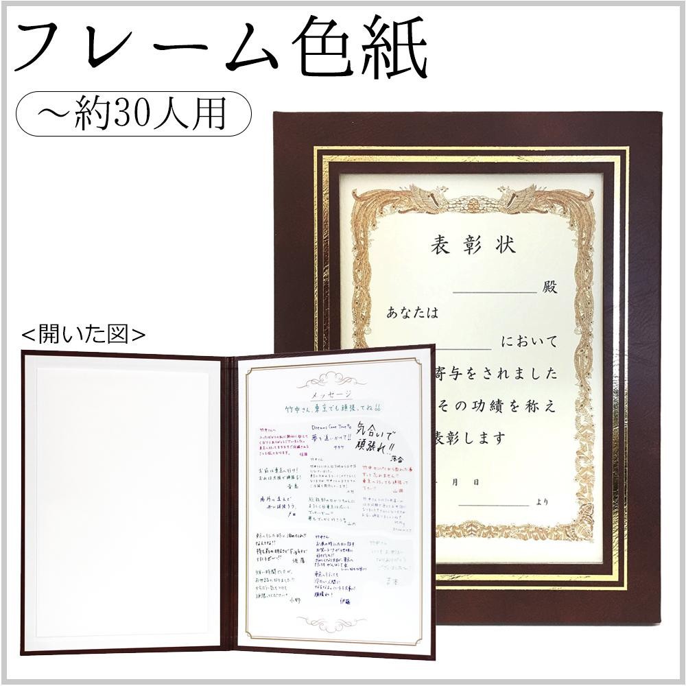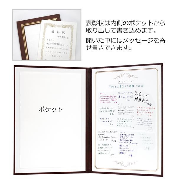 まるでフレームに入れて飾ってあるような形。中を開くとメッセージを書き込めます。表彰式のシーンを再現したり、演出のアイテムとしても盛り上がります。 |
