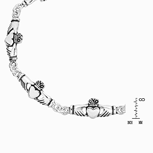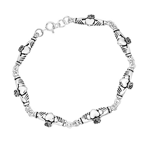 Native artisan of Bangkok, K'Jai brings Irish tradition to a beautifully crafted .925 sterling silver bracelet. Each piece features seven Celtic Claddaghs linked together forming a one of a kind design. The Claddagh is traditionally worn as a ring to symbolize loyalty, love, and friendship. Dating back to the 17th century, this symbol is not only one of love but one of historic heritage. It makes a great gift for the friend, mother, or sister who has a special place in your life. PLEASE NOTE: The handcrafted nature of this product will produce minor differences in design, sizing and weight. Variations will occur from piece to piece, measurements may vary slightly.AERAVIDA works directly with gifted and talented Artisans from all over the world. At the core of our philosophy is fair trade and fostering a sustainable future for our Artisans.