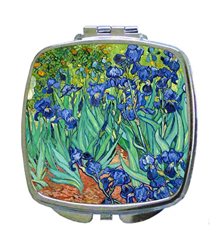 Artist Vincent Van Gogh's Irises Painting - Compact Mirror in Silvertone - Square Shaped - Pocket Sized