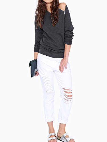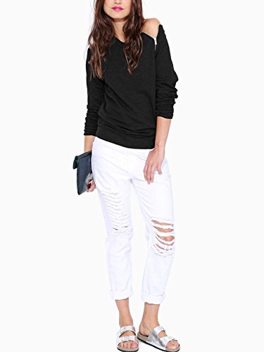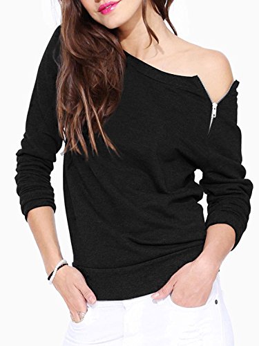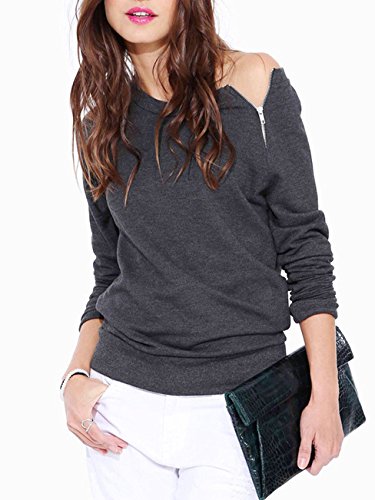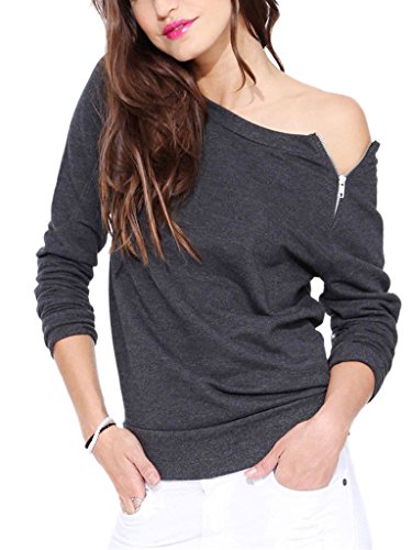 -. Title : Choies Women's Cotton Gray/Black Off Shoulder Zipper Loose T-shirt