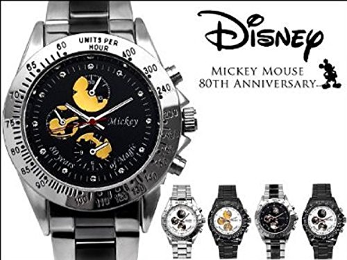 Disney 디즈니 미키 탄생80주년 기념 시크릿 미키 손목시계 실버 벨트×블랙 미키 스와로브스키 백은【병행수입품】
