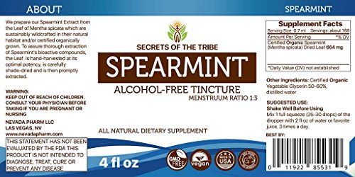 -. Title : Spearmint Alcohol-FREE Liquid Extract, Organic Spearmint (Mentha spicata) Dried Leaf Tincture Supplement