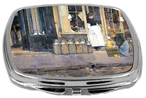 Rikki Knight Childe Hassam Art Design Compact Mirror, The Flower Girl and Milk Vendor, 3 Ounce