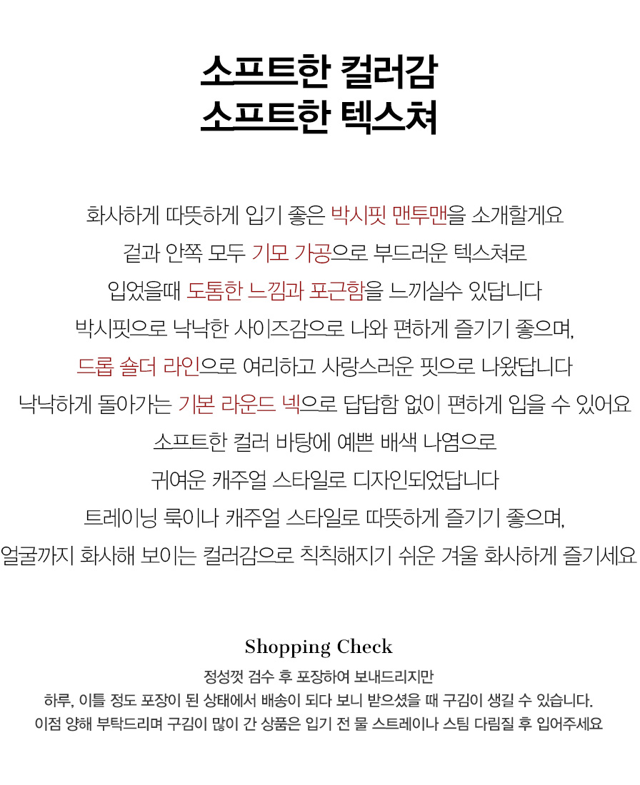 .같은 사이즈라도 체형에 따라 핏감이 조금씩 다를 수 있습니다.