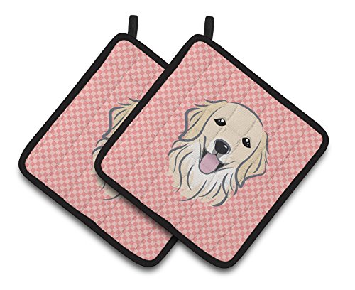 Caroline's Treasures Checkerboard Pink Golden Retriever Pair of Pot Holders BB1205PTHD, 7.5HX7.5W, Multicolor