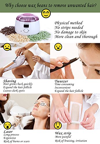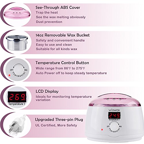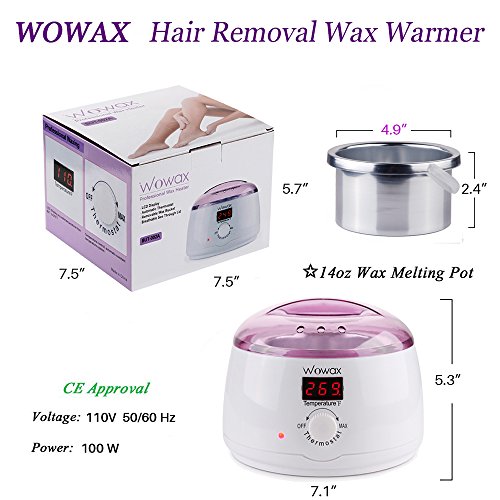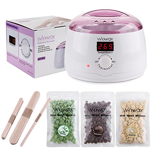 - 🔥WOWAX Waxing Kit come with a 14oz wax warmer, 3 bags x 100g wax beans and wax sticks,package:(Chocolate,Brazilian, Tea tree and 15 sticks) ]. To have a better hair removal, please keep the melted wax temperature about 75℃/165℉. Lower temperature result in Incomplete hair removal and too hot can burn your skin.