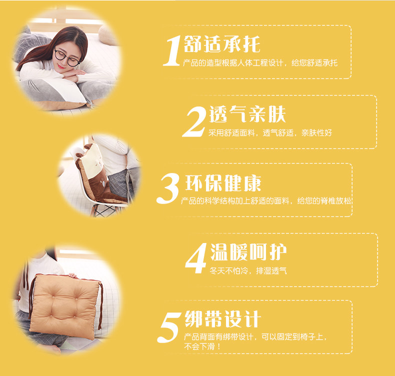 连体坐垫靠垫一体办公室椅垫地板加厚学生座垫餐椅板凳子屁股垫子󰄬