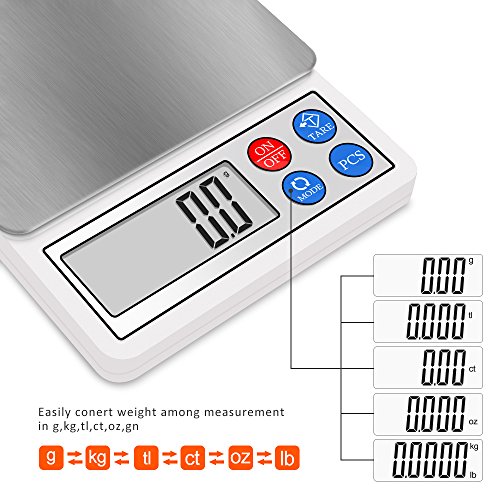 What Can We Weigh - child's food, jewelry, medicine, cooking ingredients with (0.01g / 0.001oz) up to a weight range of 3000g/ 105.8 oz.