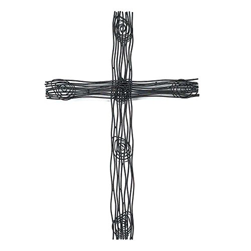 Wavy Sprial Circles Grey 16 Inch Metal Decorative Hanging Wall Cross