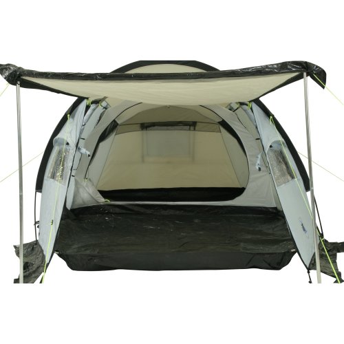 -. Feature : Tunnelzelt mit Vorraum, Fenstern und drei Eingängen / Langlebige UV- und wasserbeständige Materialbeschichtung mit 5000mm Wassersäule / Ventilationen sorgen für eine ausreichende Belüftung und ein angenehmes Klima im Zelt / Bodenplane für Sauberkeit und Feuchtigkeits-Schutz / Robuste Transport-Tasche für Zelt, Gestänge, Heringe und Abspannleinen