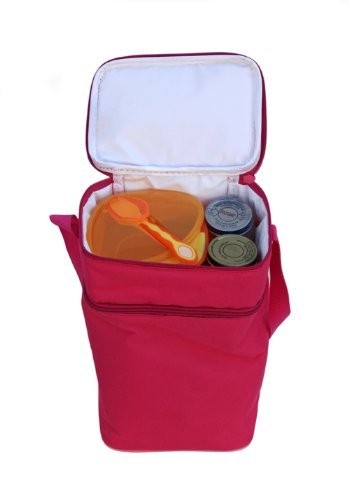-. Feature : Insulated bag separates bottles from baby food / Bottom compartment holds up to six standard bottles / Top compartment holds up to 3 food jars / Includes reusable ice pack / Lining is PVC, phthalate and lead free
