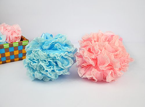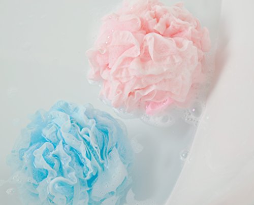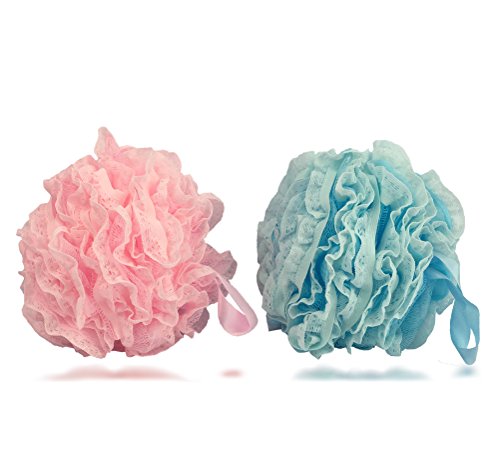 Cleanbear Shower Balls Loofahs Shower Sponge Set, 2- Pack, Pink and Blue, Large, 2.2 Ozs per Pack.