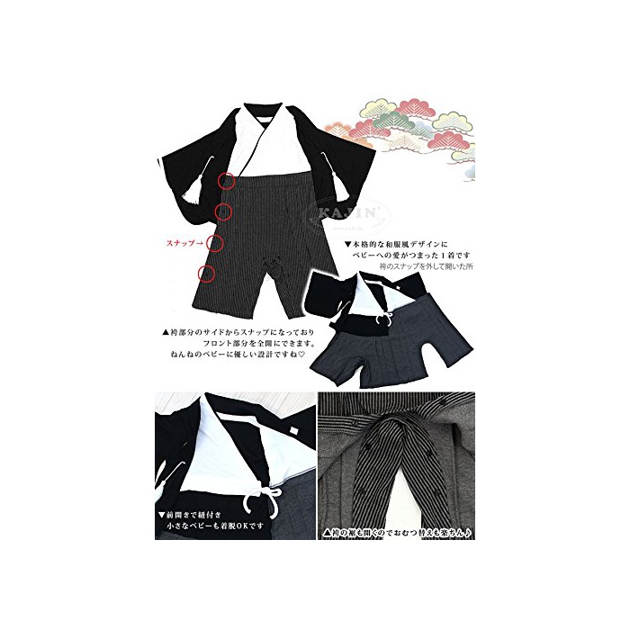 【포멀 아동복 전문점KAJIN】 하카마 롬퍼스(rompers) 베이비 커버 올 사내 아이문 부하카마 풍하오리 첨부(부) 서는 물 올【80cm】