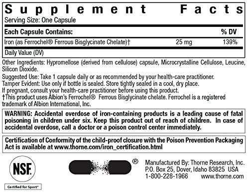 -. Binding : Health and Beauty -. Brand : Thorne Research -. Label : Thorne Research -. Manufacturer : Thorne Research -. ProductGroup : Health and Beauty -. ProductTypeName : HEALTH_PERSONAL_CARE -. Publisher : Thorne Research -. Studio : Thorne Research -. Title : Iron Bisglycinate 60 vegetarian capsules