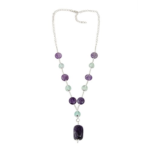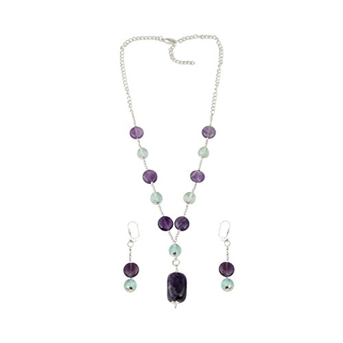 Green Fluorite adds growth and nature energies to the properties of Fluorite. It clears negative energy from any environment, and Violet Purple Amethyst brigns the joy and happiness with full of it's strenght, Pearlz Ocean remains the effects with 28.16 Gram Weighted Necklace Set, shared-up with 20 Inches Necklace, 1 Inch Pendal & 2.5 Inches Earrings to grace the beauty with amazing design of this beautiful necklace only for women.Its a best Jewelry Gift collection for your loved one's on all events of Birthday, Valentine, Thanksgiving, Christmas, mother day and many more.Feature