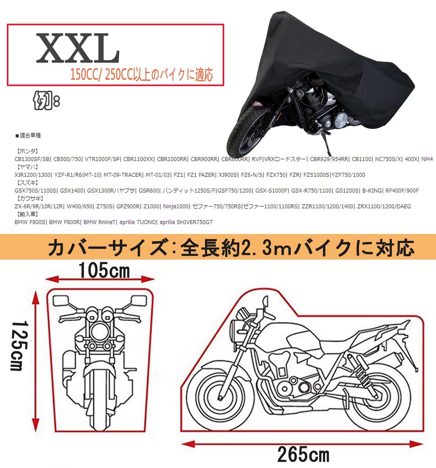 - Cover with Supori in a three-dimensional structure, it is a cover that is friendly to the bike.